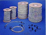 Shock Cord Mutual's shock cords are made from the finest marine grade virgin rubber. They are double nylon covered and available in a white/black stripe.