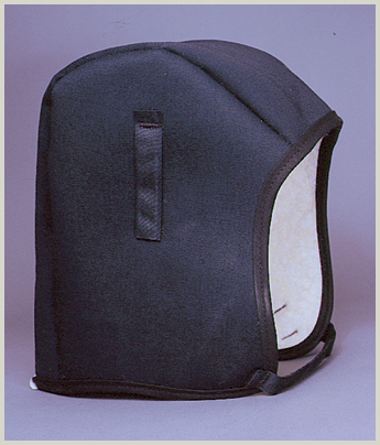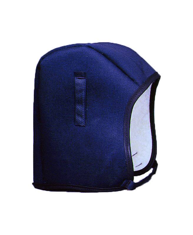 Dark blue twill shell with sherpa lining. Regular nape. Non-durable fire retardant.