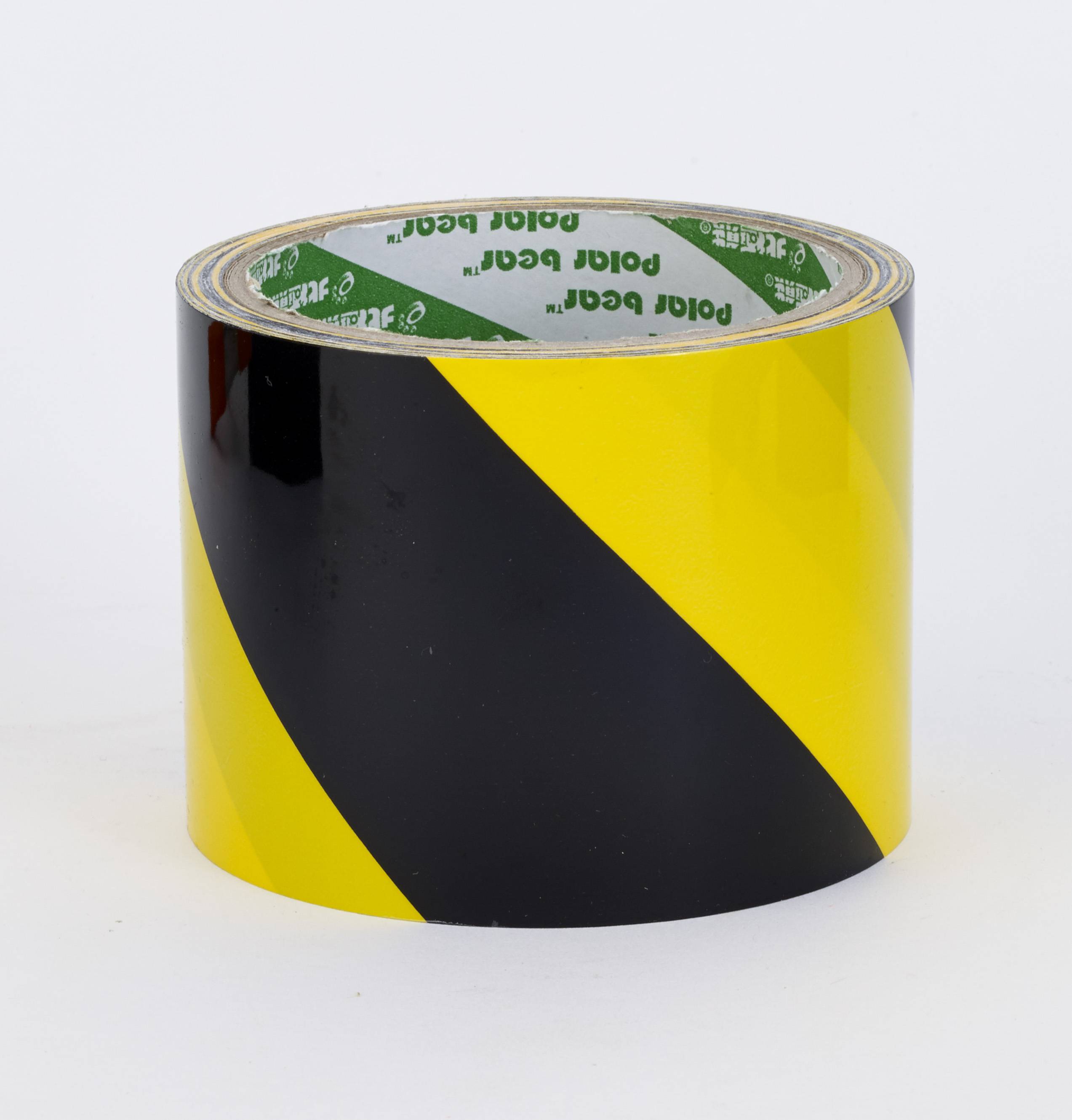 Our polypropylene laminated “super tough” hazard stripe tape is an extremely durable, grease resistant, pressure sensitive tape that is ideal for applications where an extra measure of wear resistance is required. Available in 2”, 3” or 4” widths in 18 or 36 yd rolls. Available colors: black/yellow, red/white, black/white. 2” (24 per box), 3” (16 per box), 4” (12 per box).