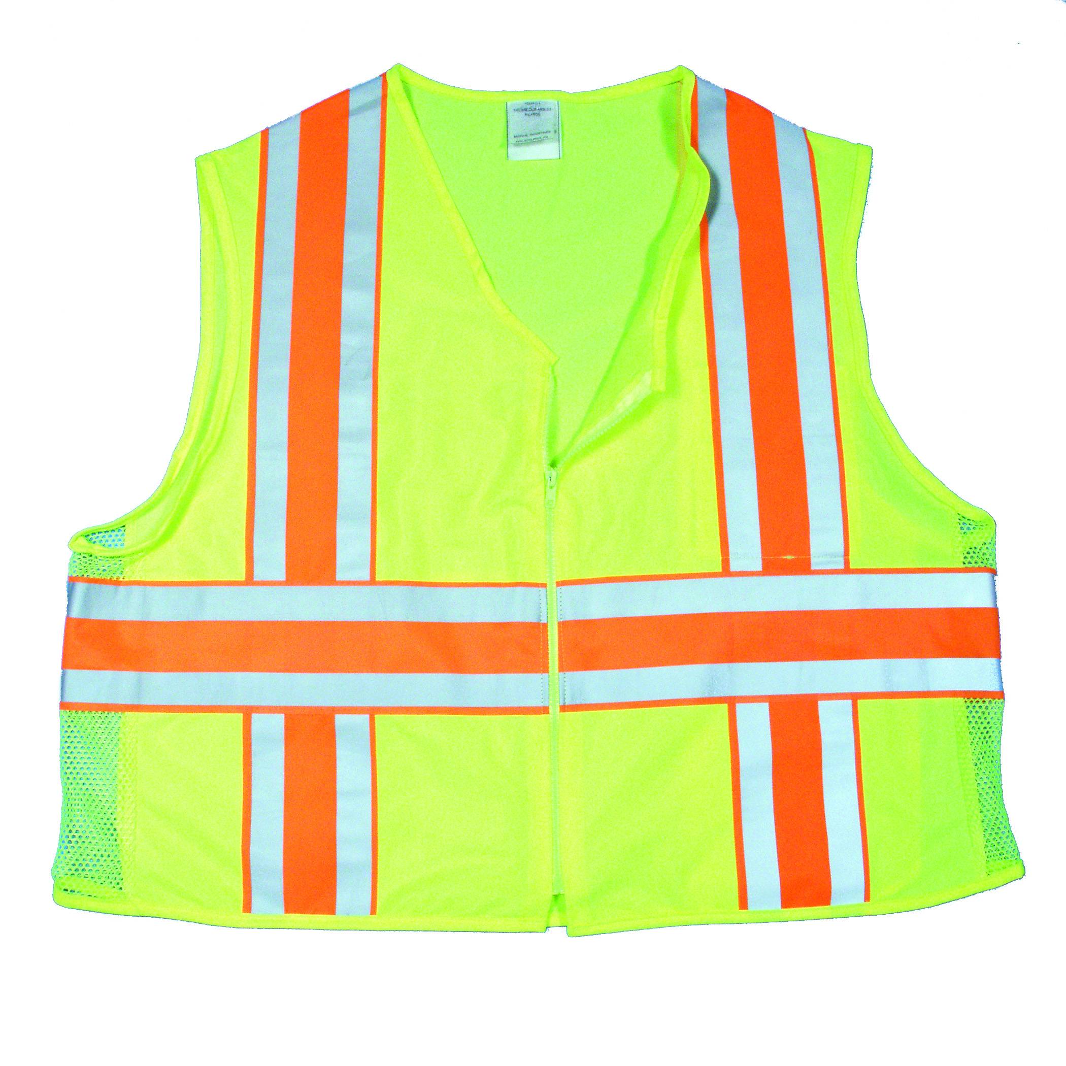 • 3.4 oz breathable, extra durable 100% knit polyester mesh high visibility lime material, and solid knit side panels for durability.