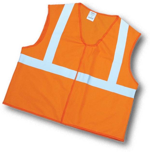 • 3.65 oz breathable, extra durable 100% knit polyester high visibility orange material