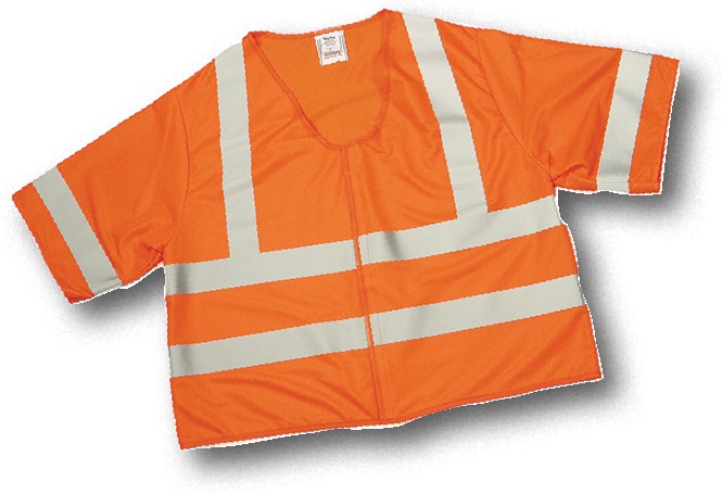 New ANSI Standard Class 3 with sleeves, featuring 2” silver reflective stripes, made from 3.65 oz. breathable, extra durable high visibility orange material. Full velcro closure in sizes Med-4X. Additional sizes available by request.