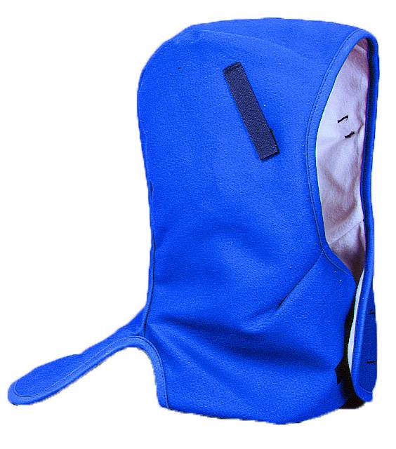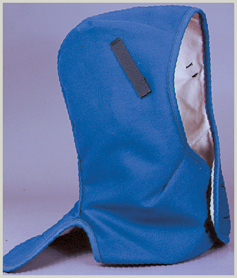 Durable flame resistant outer shell with 100% cotton flannel lining. Three loop straps with Velcro closure. X-long Nape.