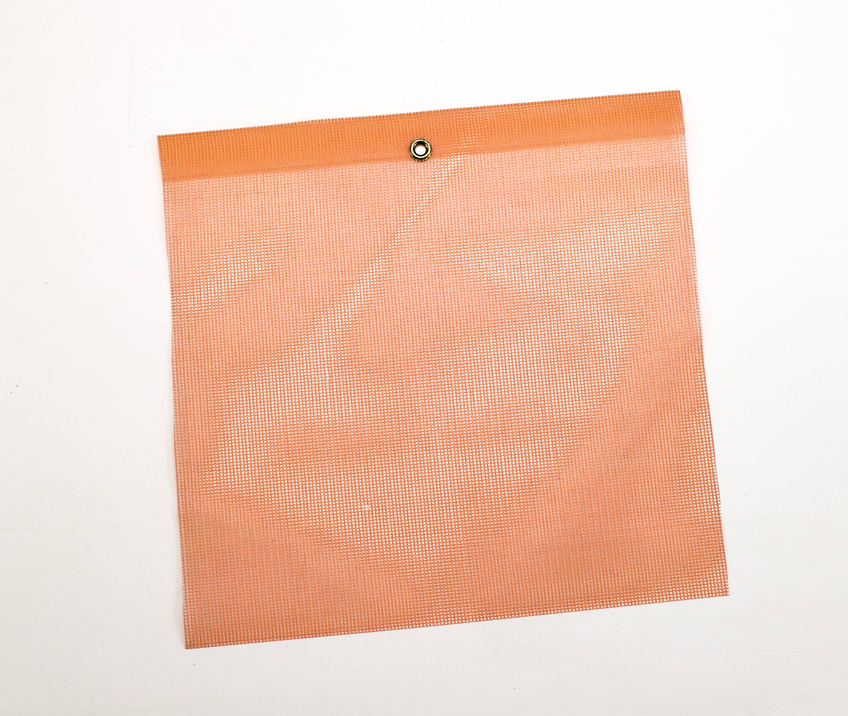 These flags are ideal for use on moving vehicles. Their open mesh design allows air flow and will not fray. They are fluorescent, red/orange, and are hemmed and grommeted along the top. They come with or without a dowel spreader and are available in 12” x 12”, or 18” x 18”. 10 per bundle.