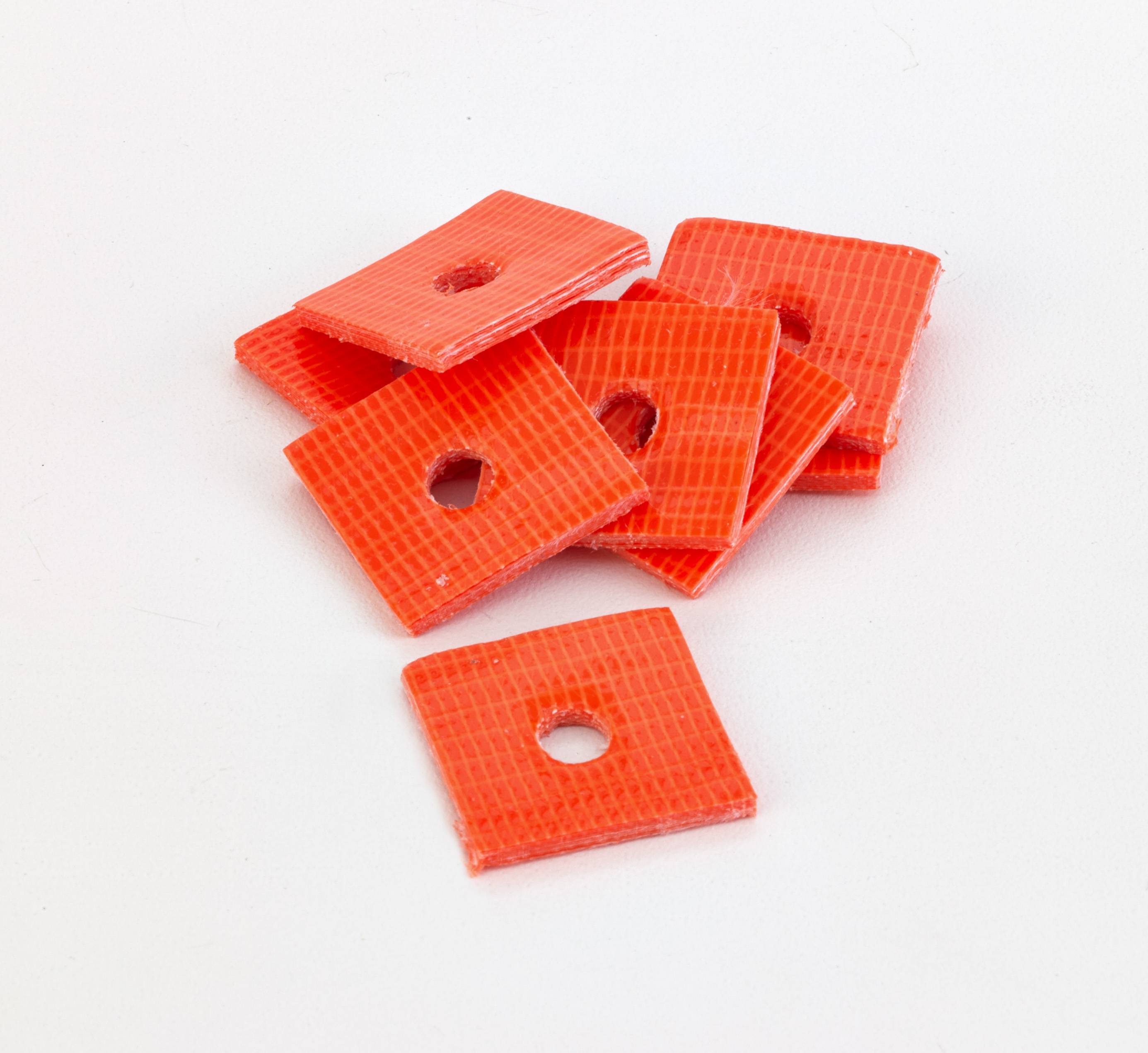 Made of fluorescent red/orange vinyl-impregnated nylon fabric, these nail markers are so tough they are almost impossible to tear. Measuring a 1” square with a 1/8” or 1/4” center hole, they are also available in custom-made sizes. 50 bags, 70 per bag.