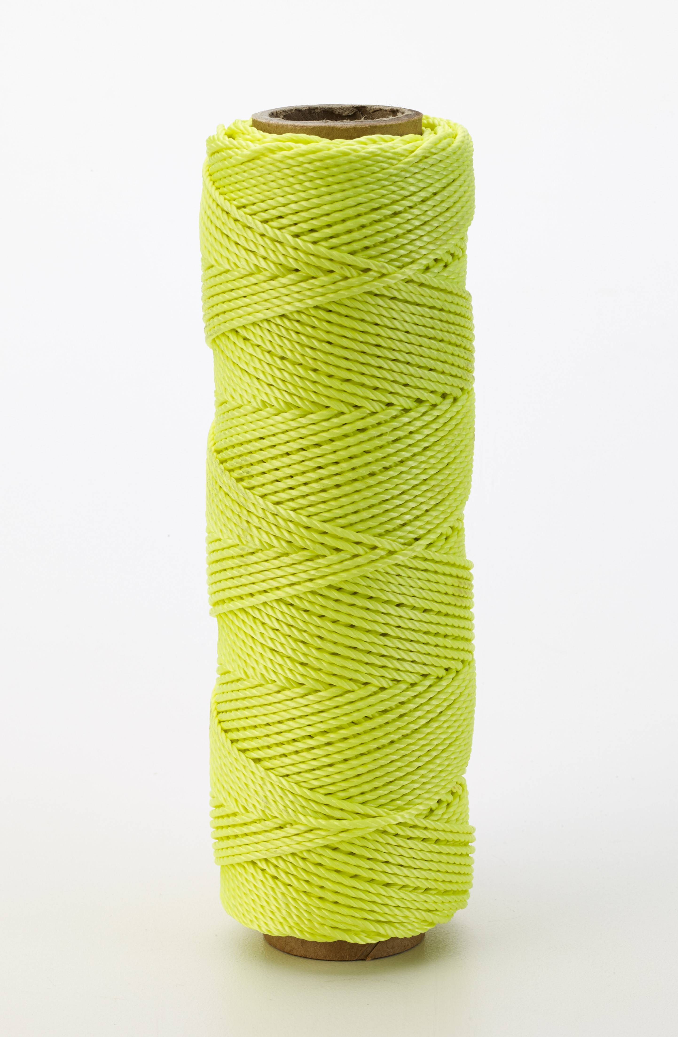 Our high-quality #18 twine is made from 100% filament nylon that is resistant to abrasion, rot, mildew, marine growth, petroleum, and chemicals. This nylon line is ideal for masonry, chalk line, duck decoy line, net repair, and many other general uses. Available in Twisted or Braided, Glo-Lime, Glo Orange, Glo-Pink, Glo-Yellow, Green, White, and Yellow. In ¼ lb,½ lb and 1lb size rolls.