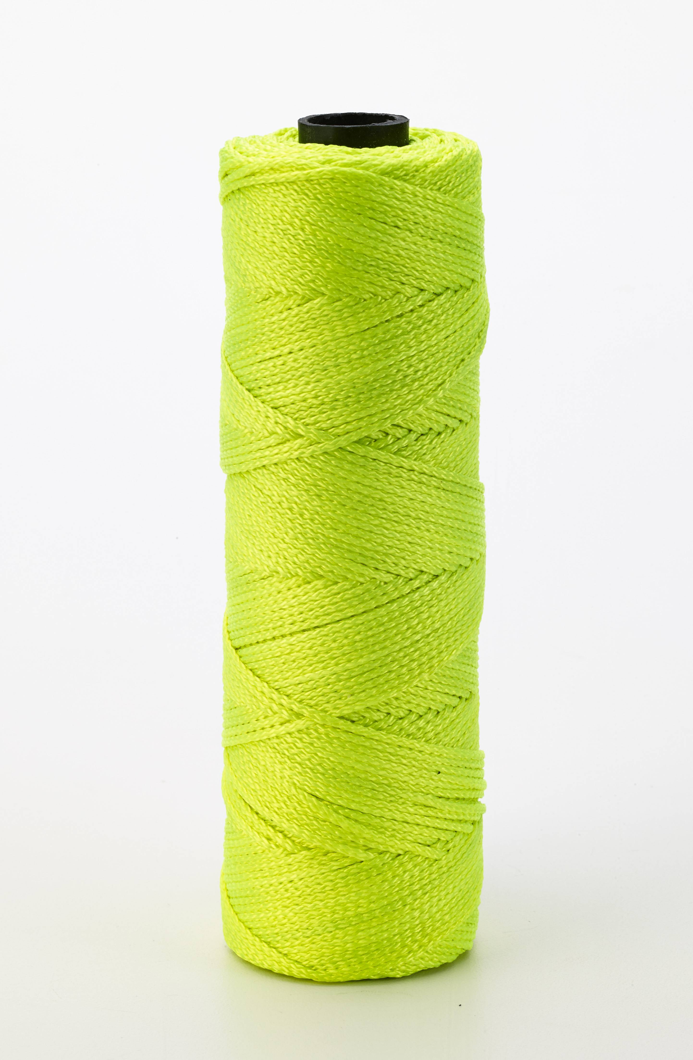 Our high-quality #18 twine is made from 100% filament nylon that is resistant to abrasion, rot, mildew, marine growth, petroleum, and chemicals. This nylon line is ideal for masonry, chalk line, duck decoy line, net repair, and many other general uses. Available in Twisted or Braided, Glo-Lime, Glo Orange, Glo-Pink, Glo-Yellow, Green, White, and Yellow. In ¼ lb,½ lb and 1lb size rolls.