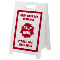 Portable 2-sided messaging Reusable, durable corrugated PVC Easy to set up A-Frame tongue and slot design Fold flat for convenient storage Sign dimensions: 12" W x 20" HMutual's Social Distancing Floor Signs are ideal for guiding customers or employees to keep a safe distance. Place these signs to indicate and remind everyone where to safely stand.