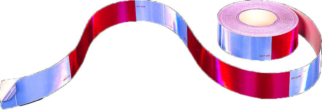 Federal law requires tractor trailers, flat beds, tankers etc. to have a 2" wide highly reflective tape on the sides and rear of each vehicle. Our red and white striped tape (11" red, 7" white) comes in 2" x 50 yd rolls and meets all federal and state specifications. Specification compliance: Reflectorization Requirements: ASTM D4956-93B Type V. NHTSA conspicuity regulation: LS300 C - FP92. Effective 12/1/93.