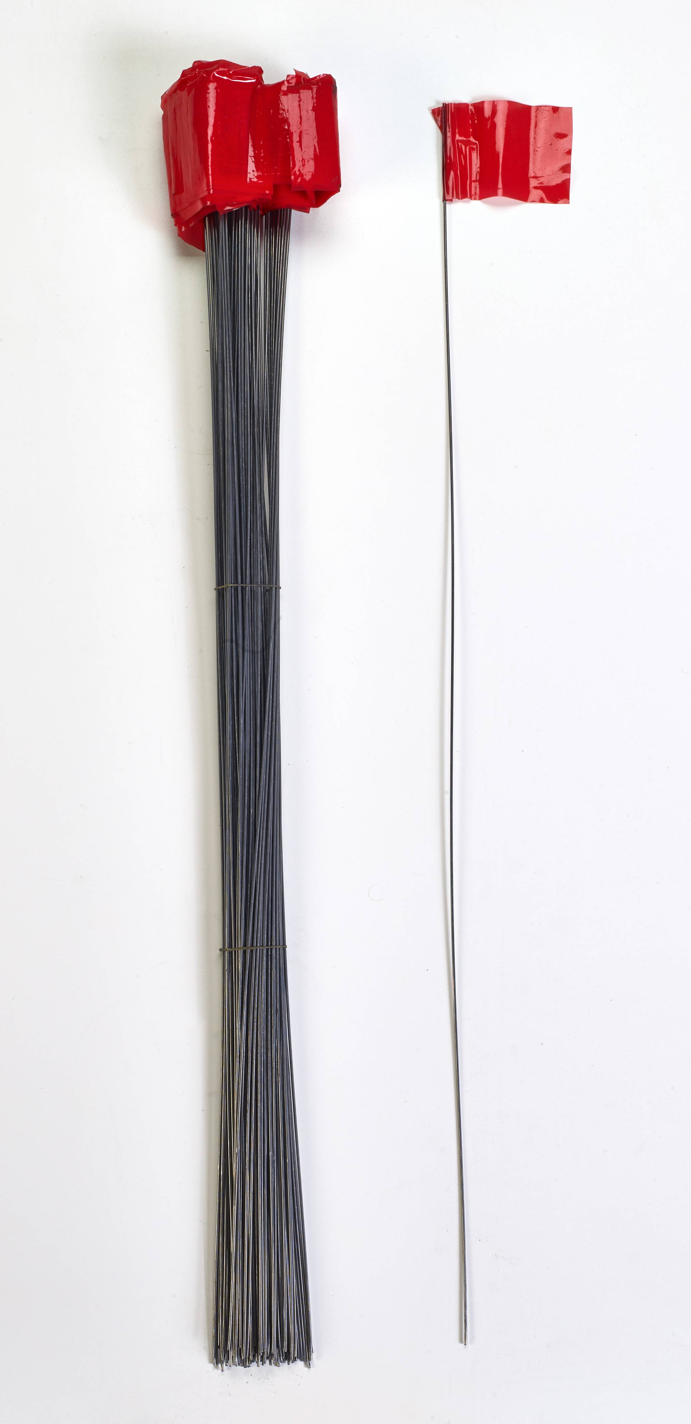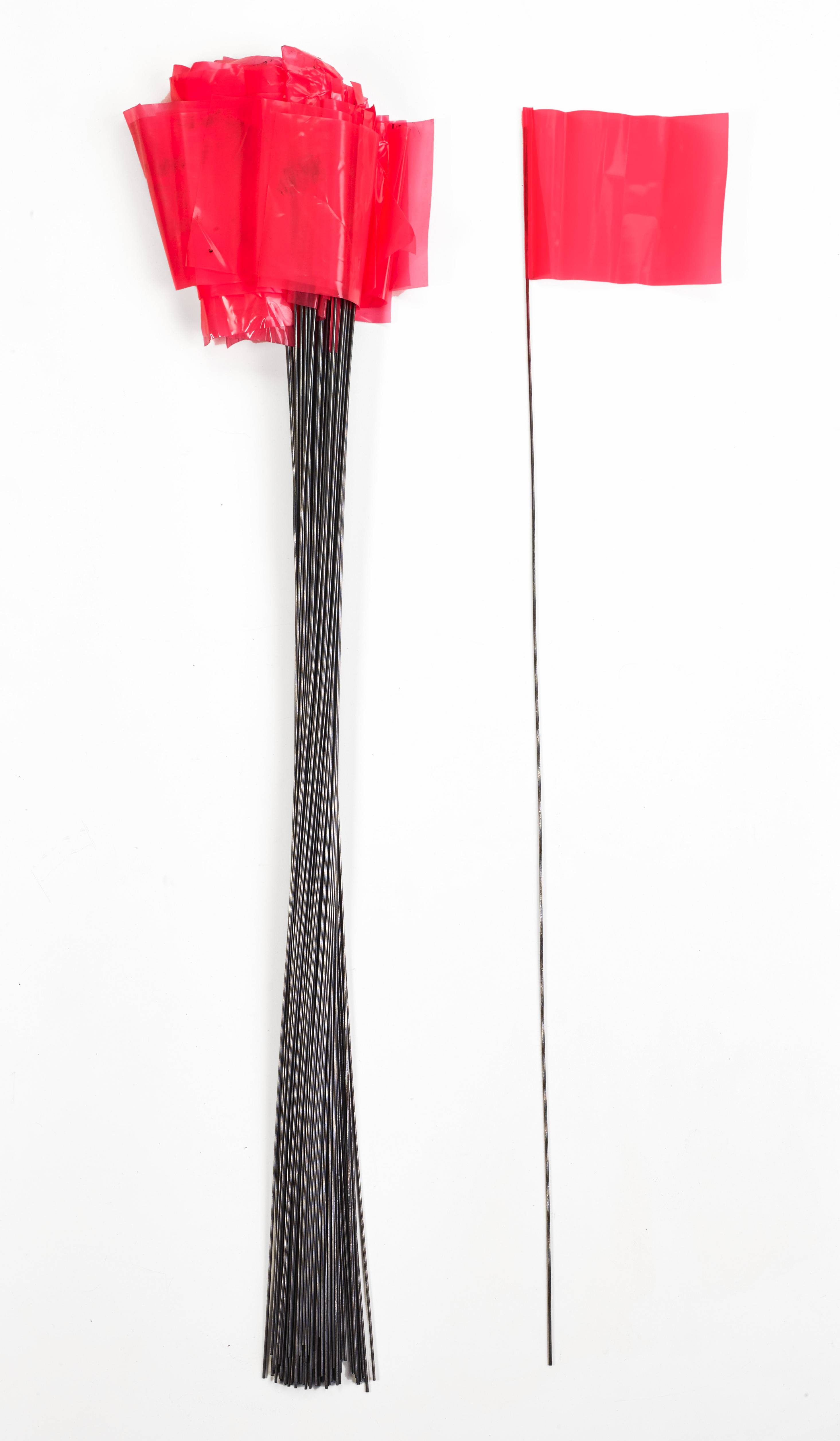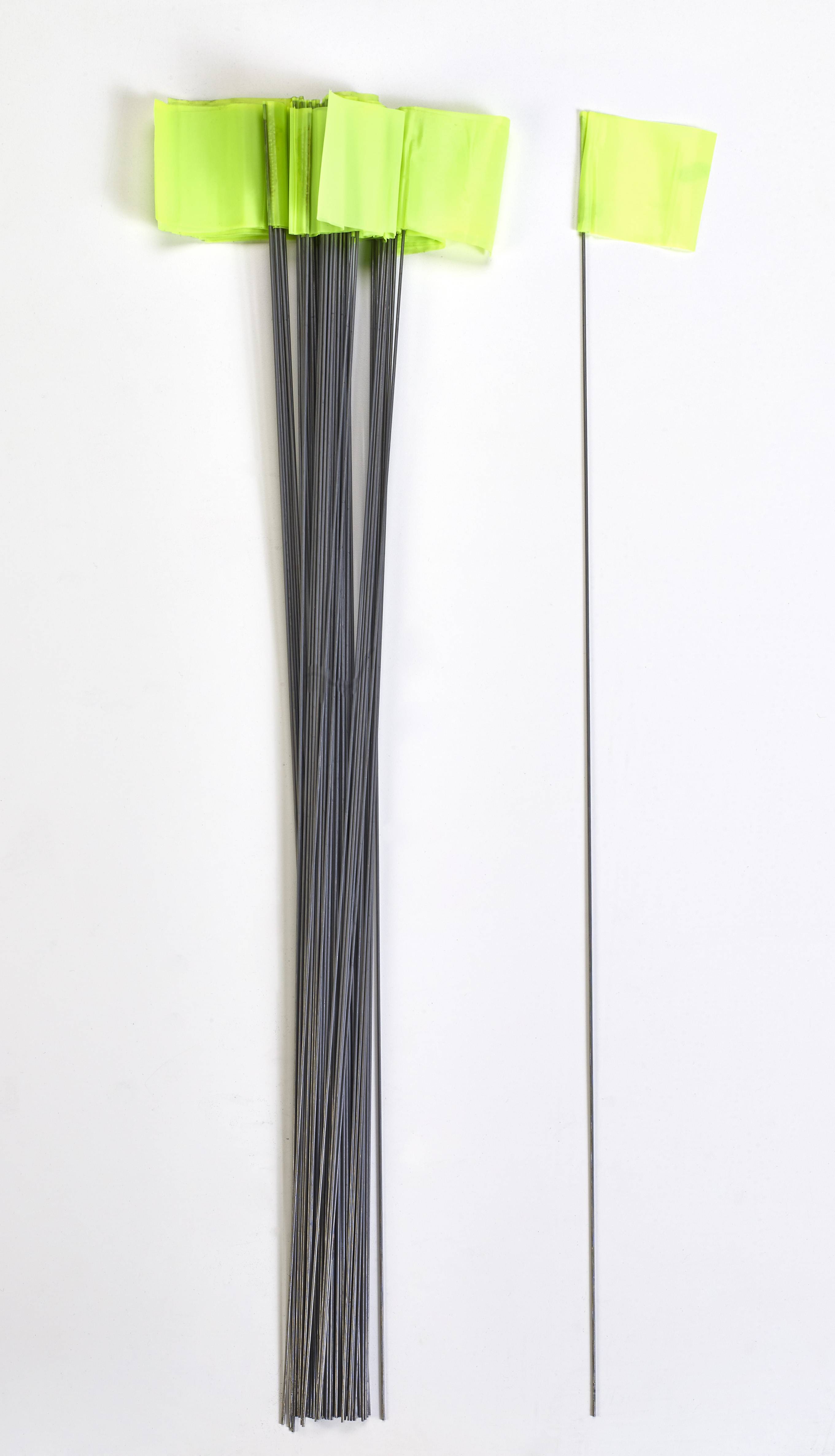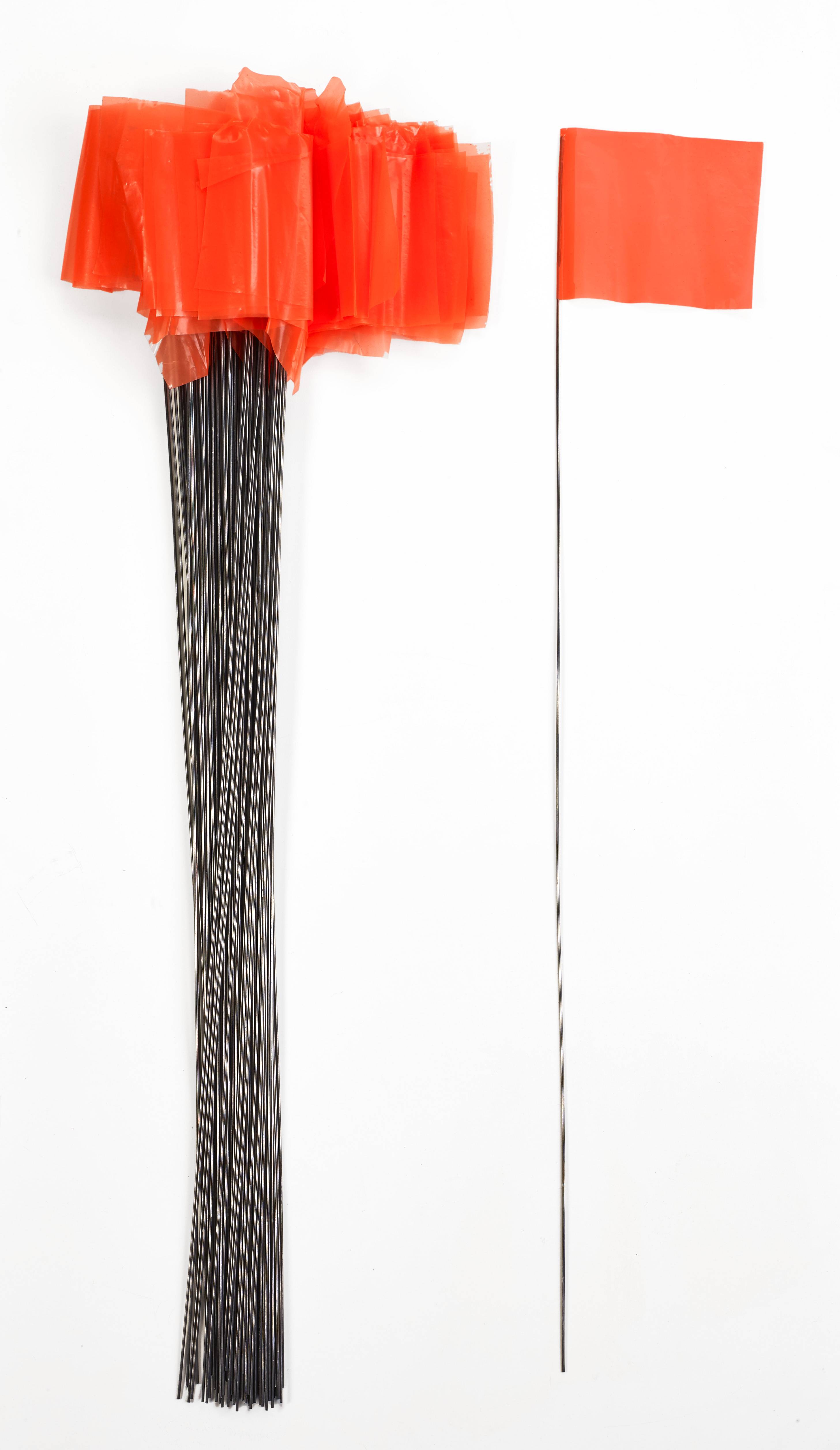 Our wire marking flags are rated #1 in the industry for quality and durability. A heavy gauge PVC flag is used that will not tear in the wind or crack from cold weather. An exclusive hot melt glue system insures that the flags stay on the wire and not on the ground. Available in 2.5” x 3.5” x 21” &
