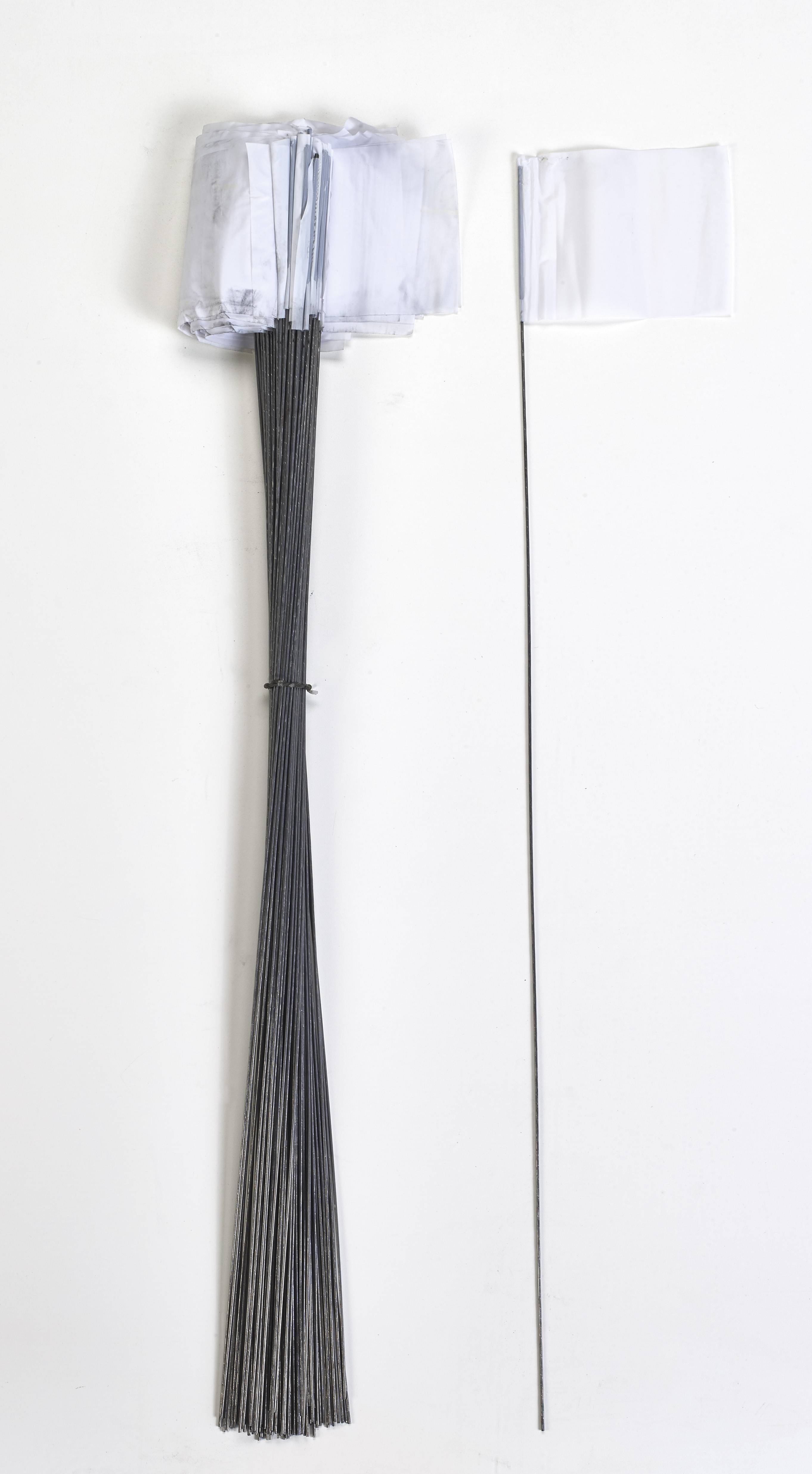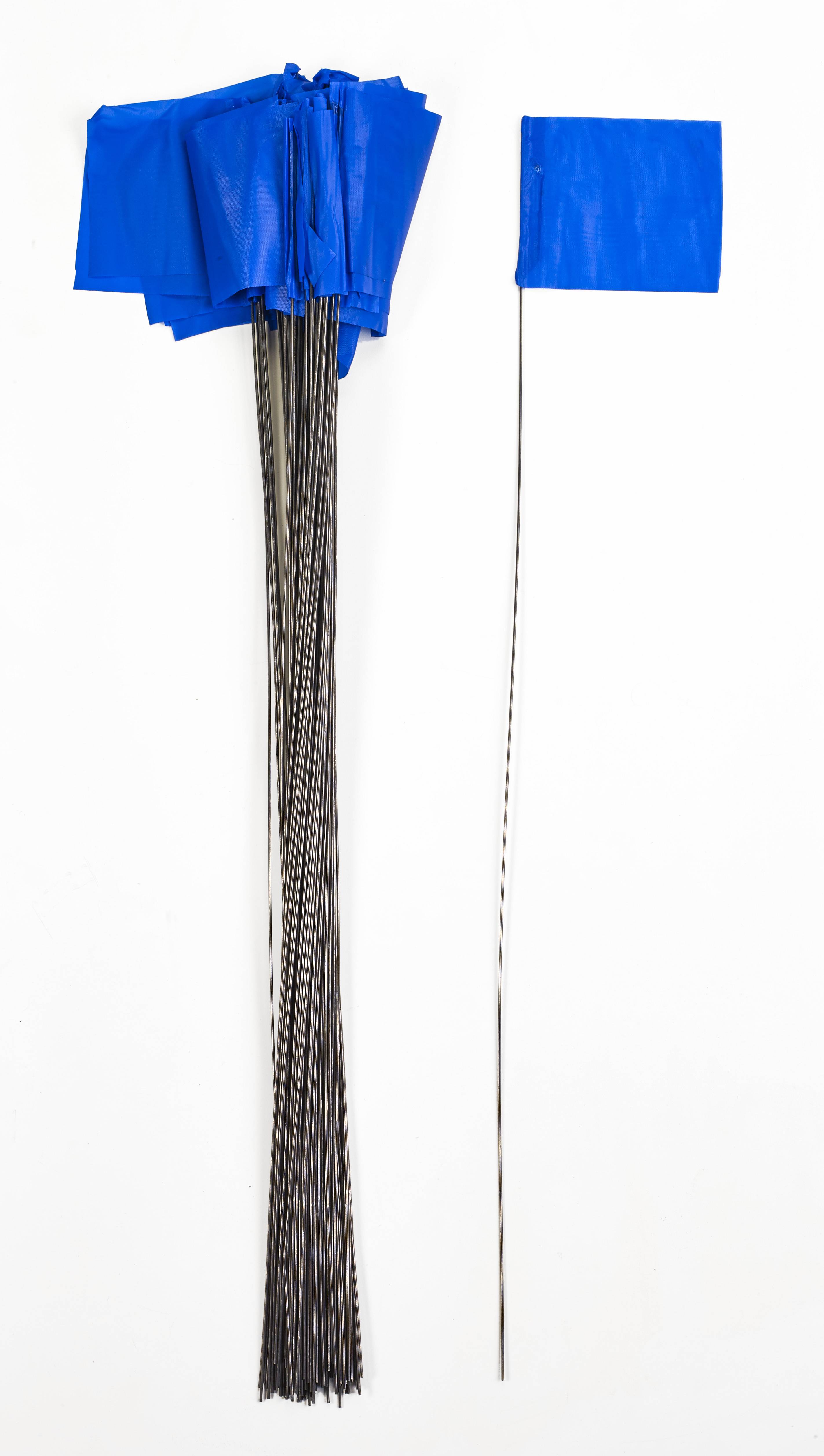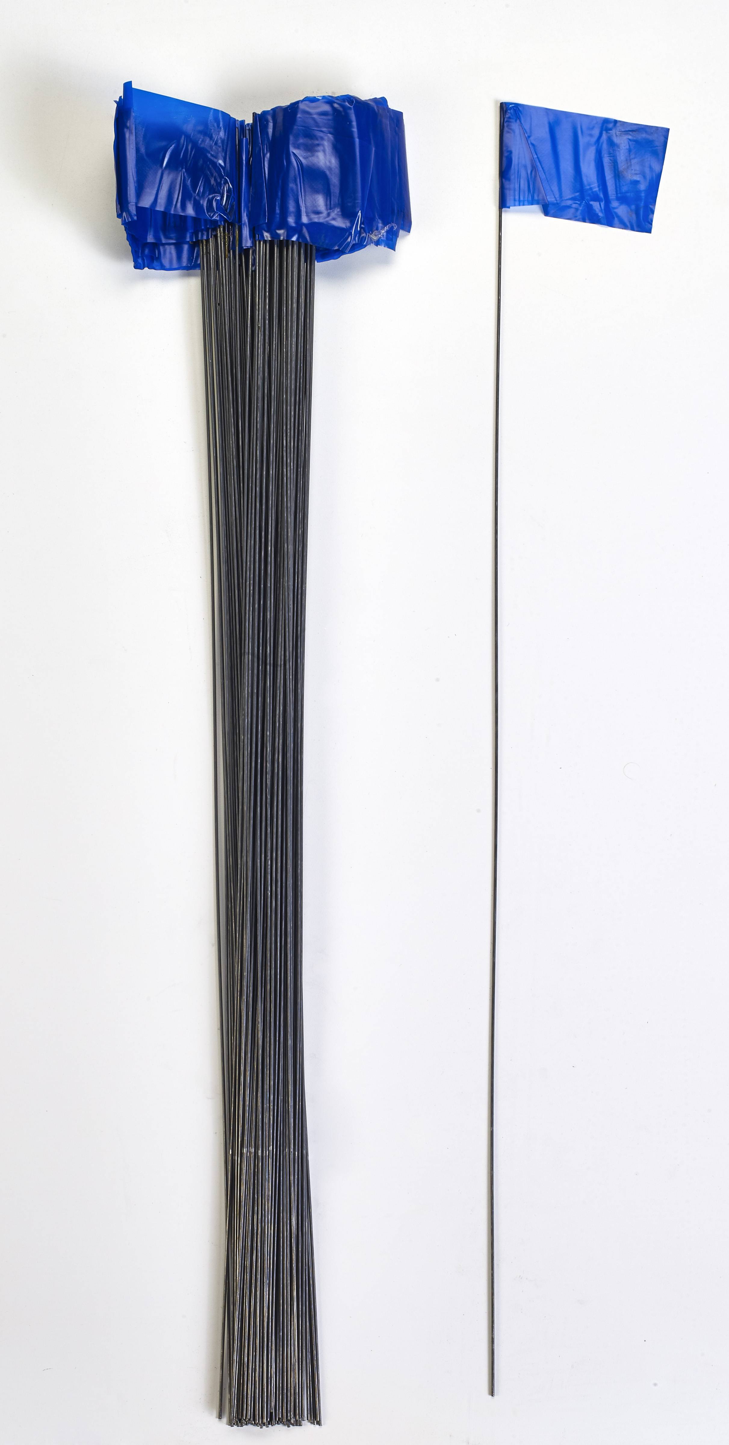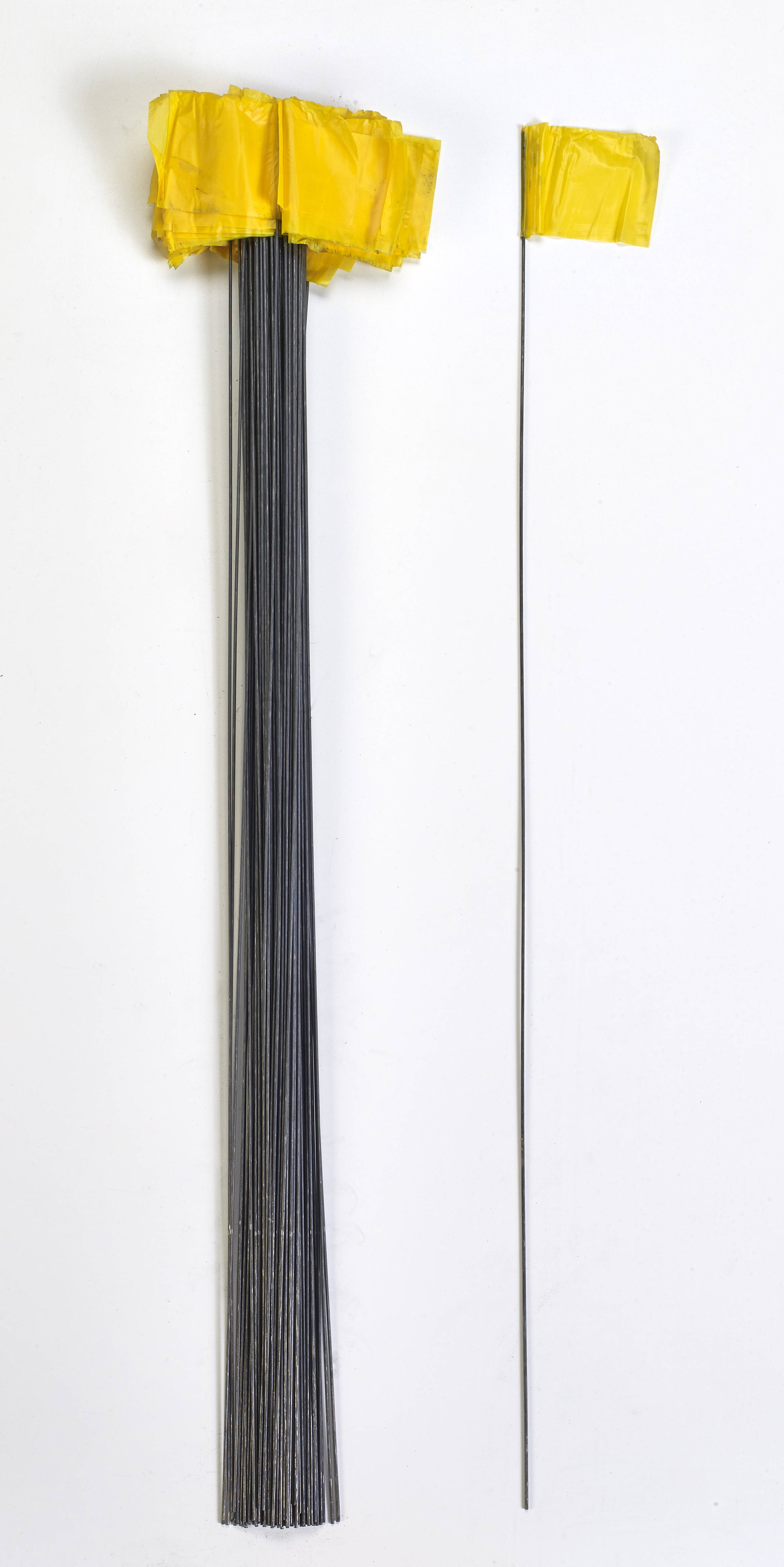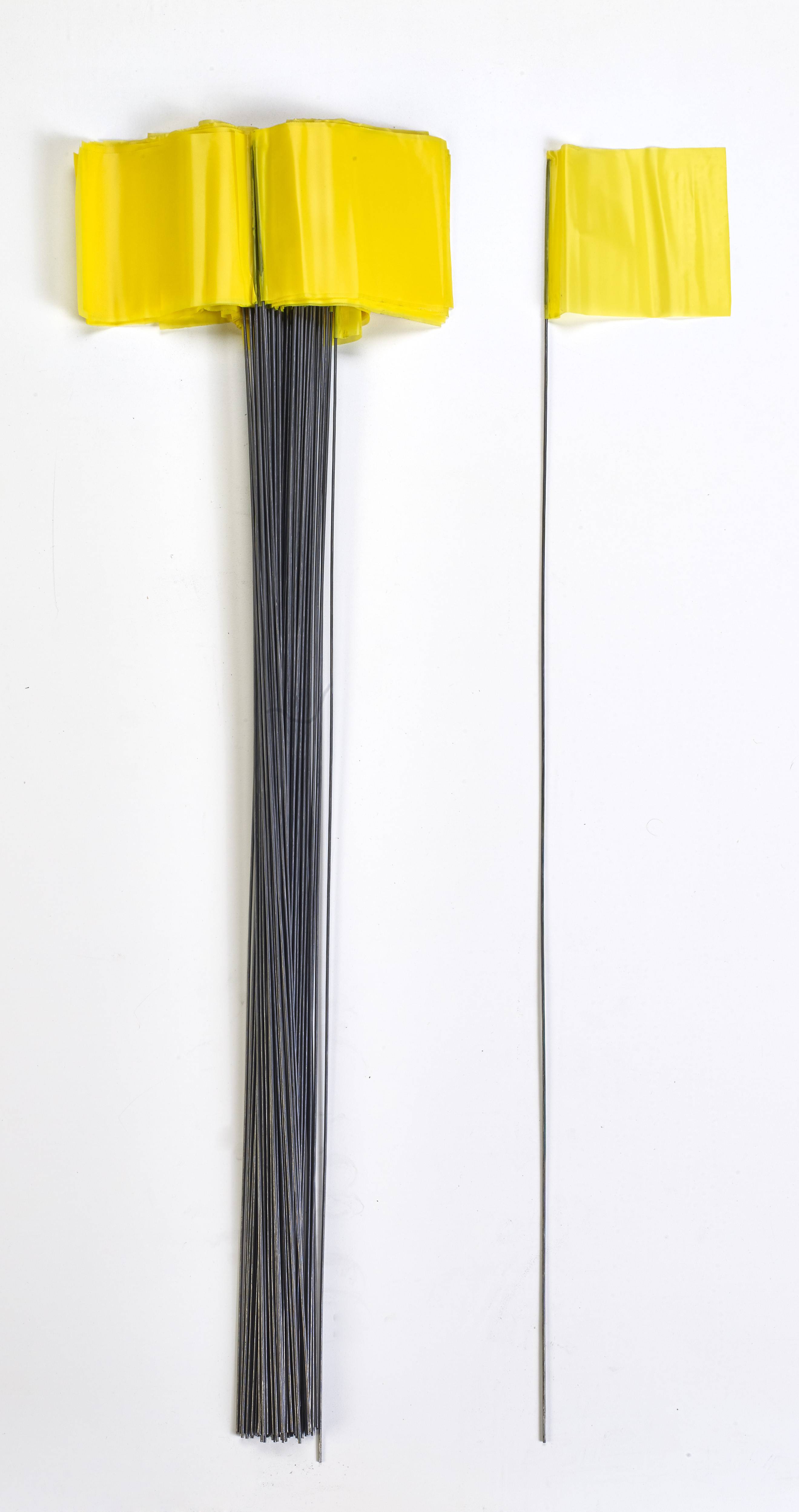 Our wire marking flags are rated #1 in the industry for quality and durability. A heavy gauge PVC flag is used that will not tear in the wind or crack from cold weather. An exclusive hot melt glue system insures that the flags stay on the wire and not on the ground. Available in 2.5” x 3.5” x 21” &
