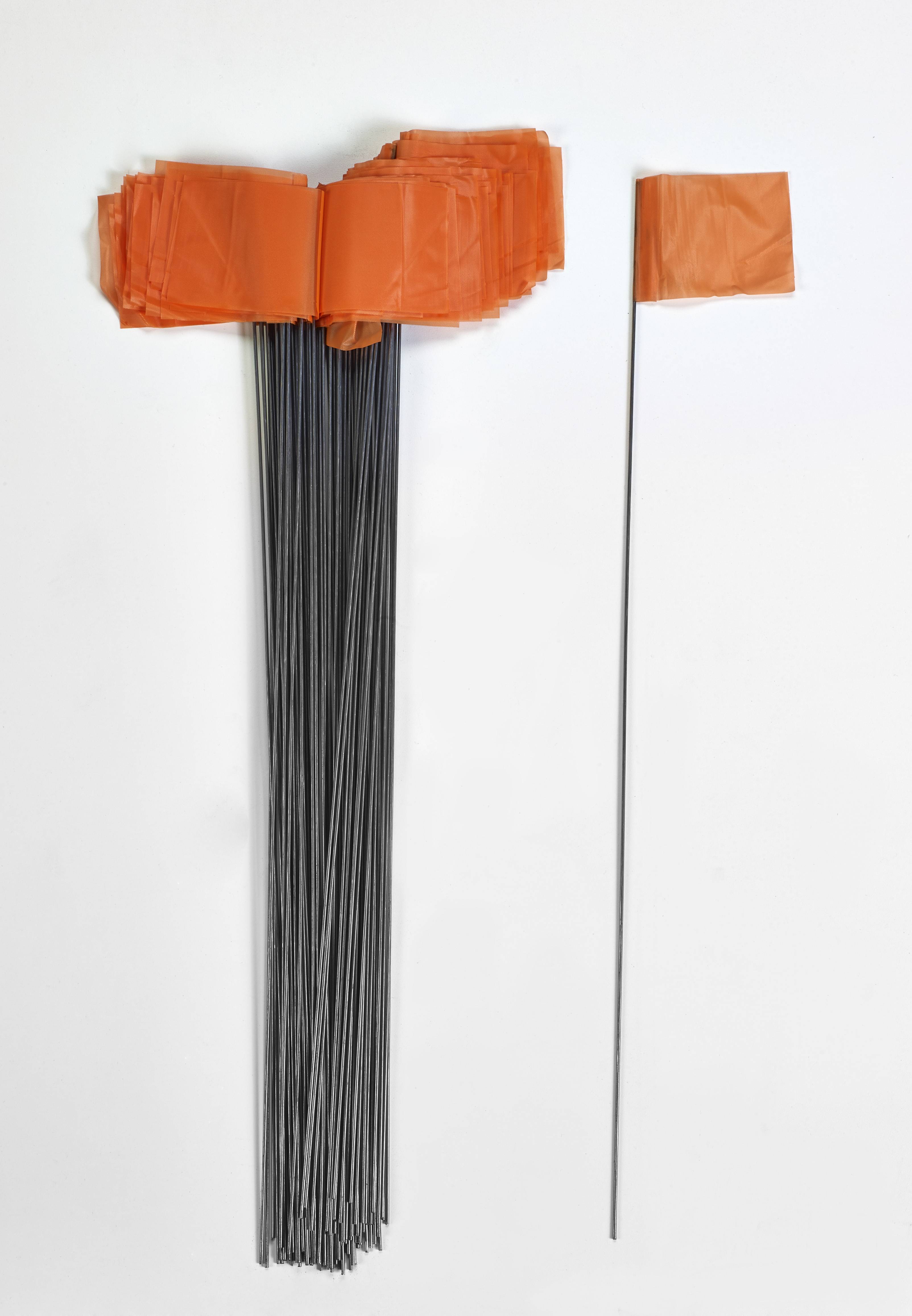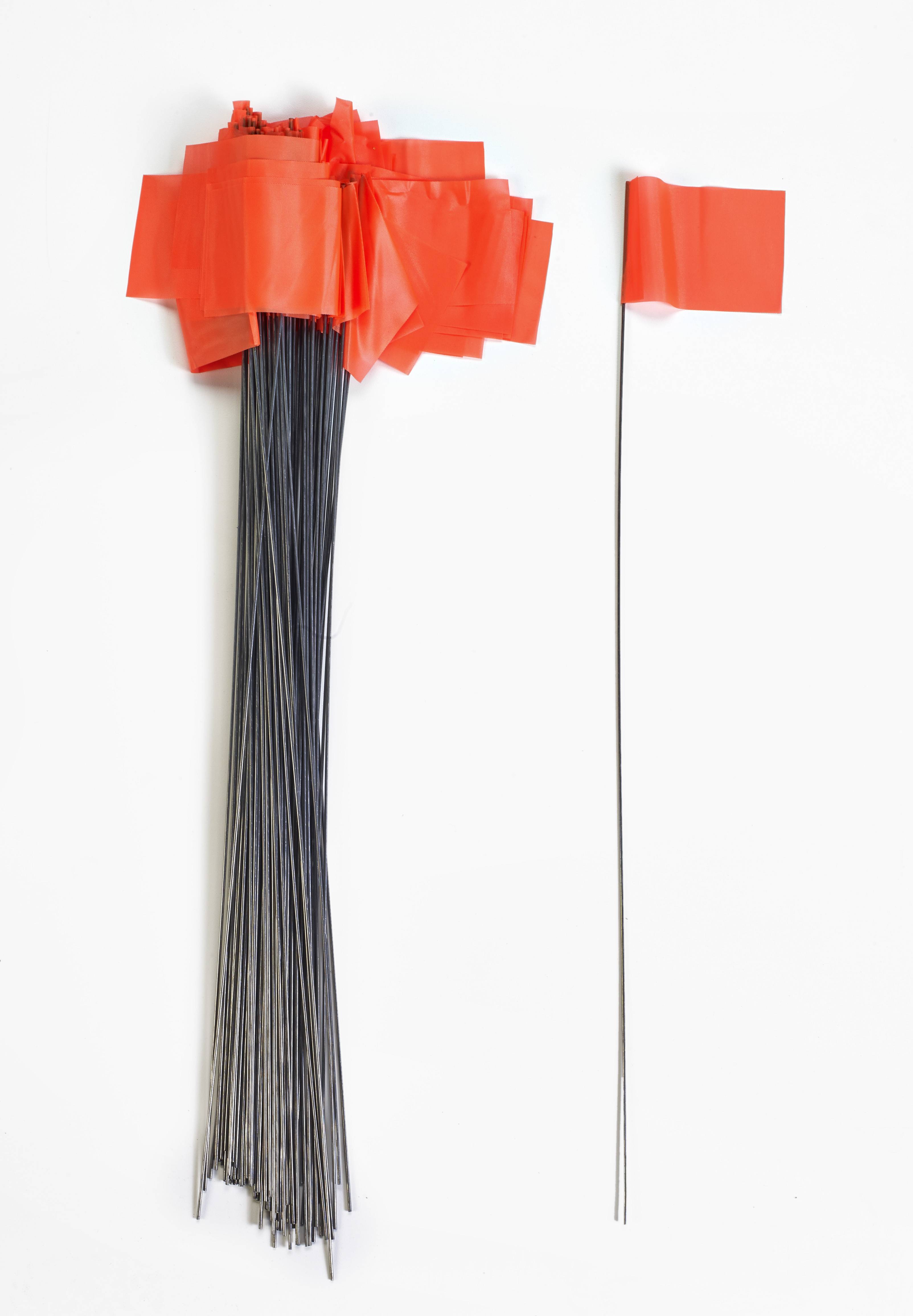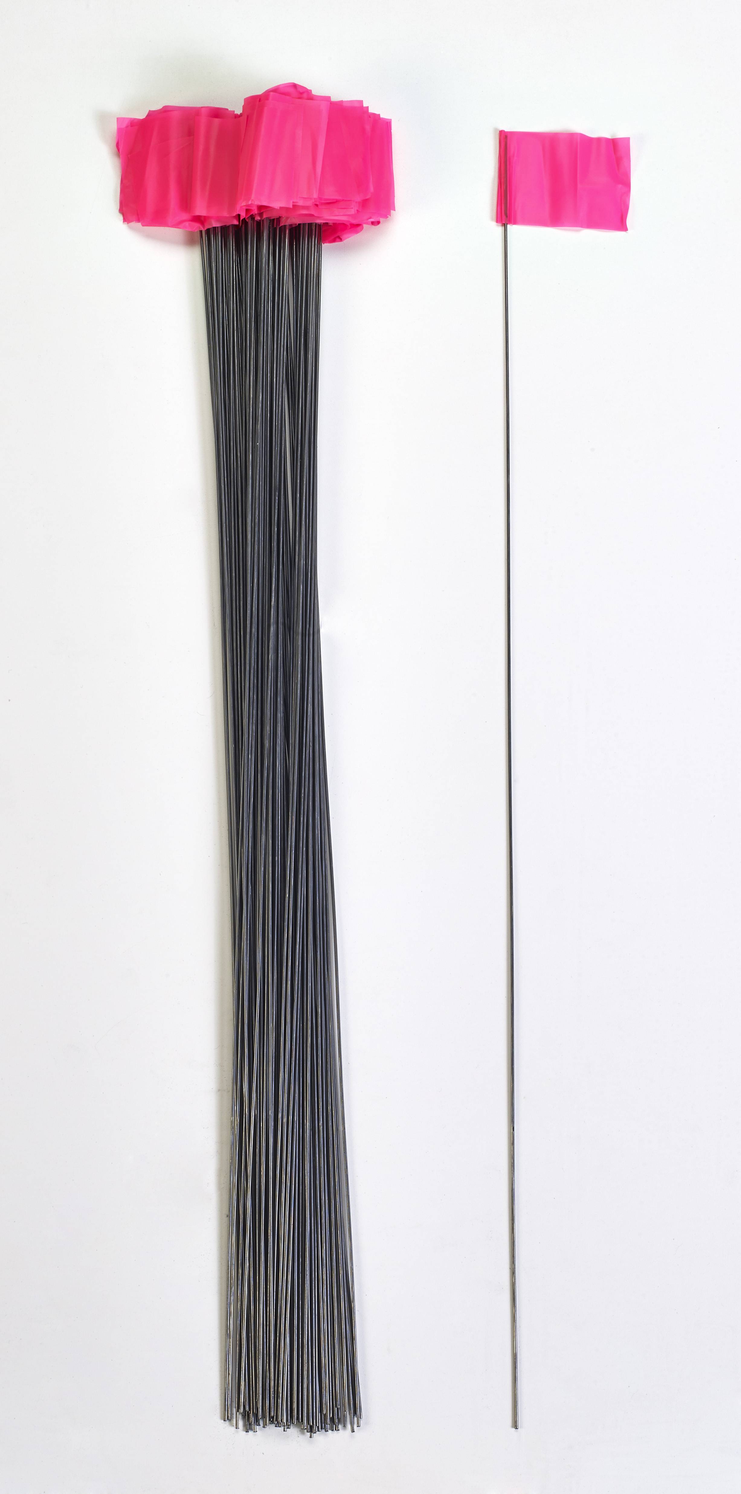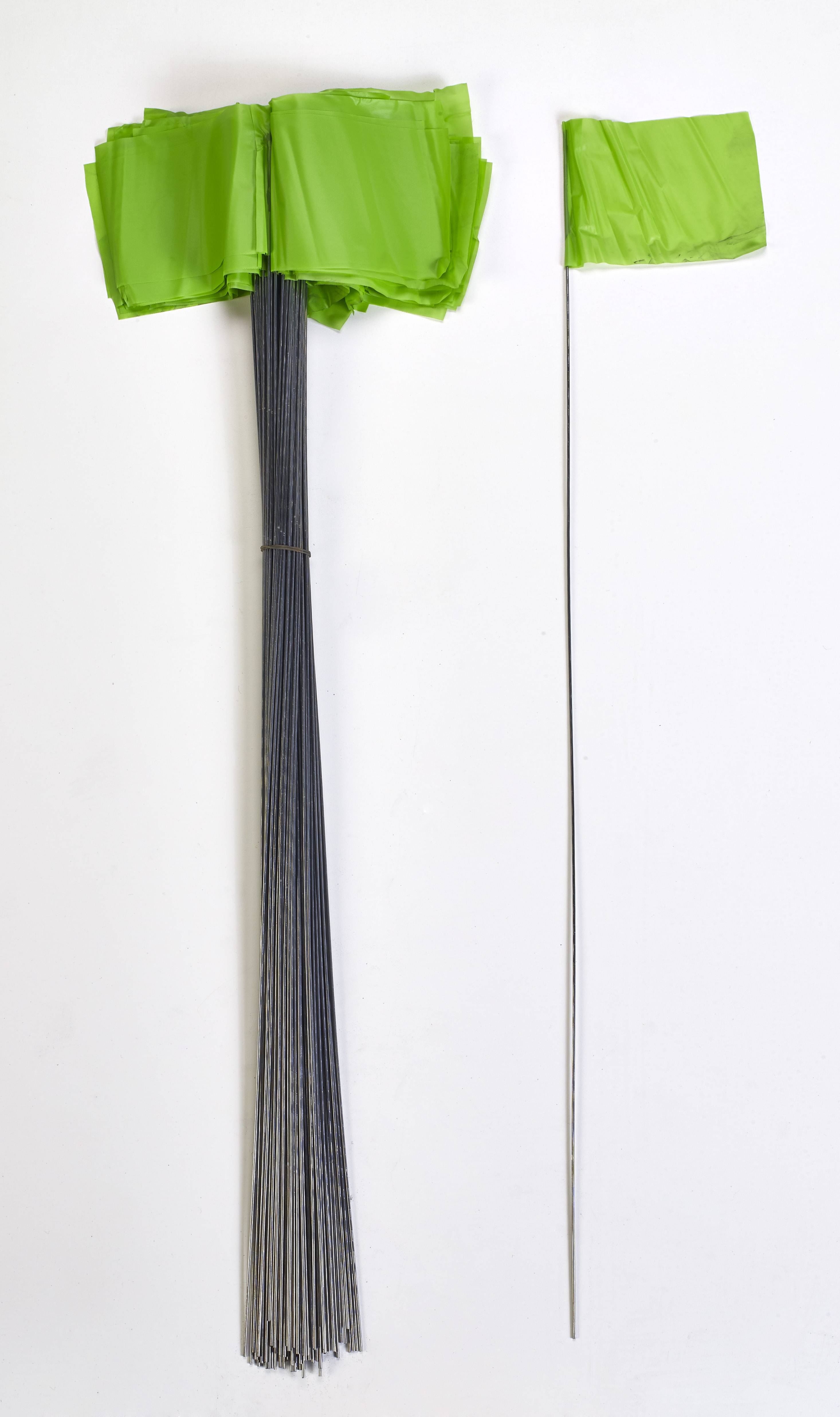 Our wire marking flags are rated #1 in the industry for quality and durability. A heavy gauge PVC flag is used that will not tear in the wind or crack from cold weather. An exclusive hot melt glue system insures that the flags stay on the wire and not on the ground. Available in 2.5” x 3.5” x 21” &
