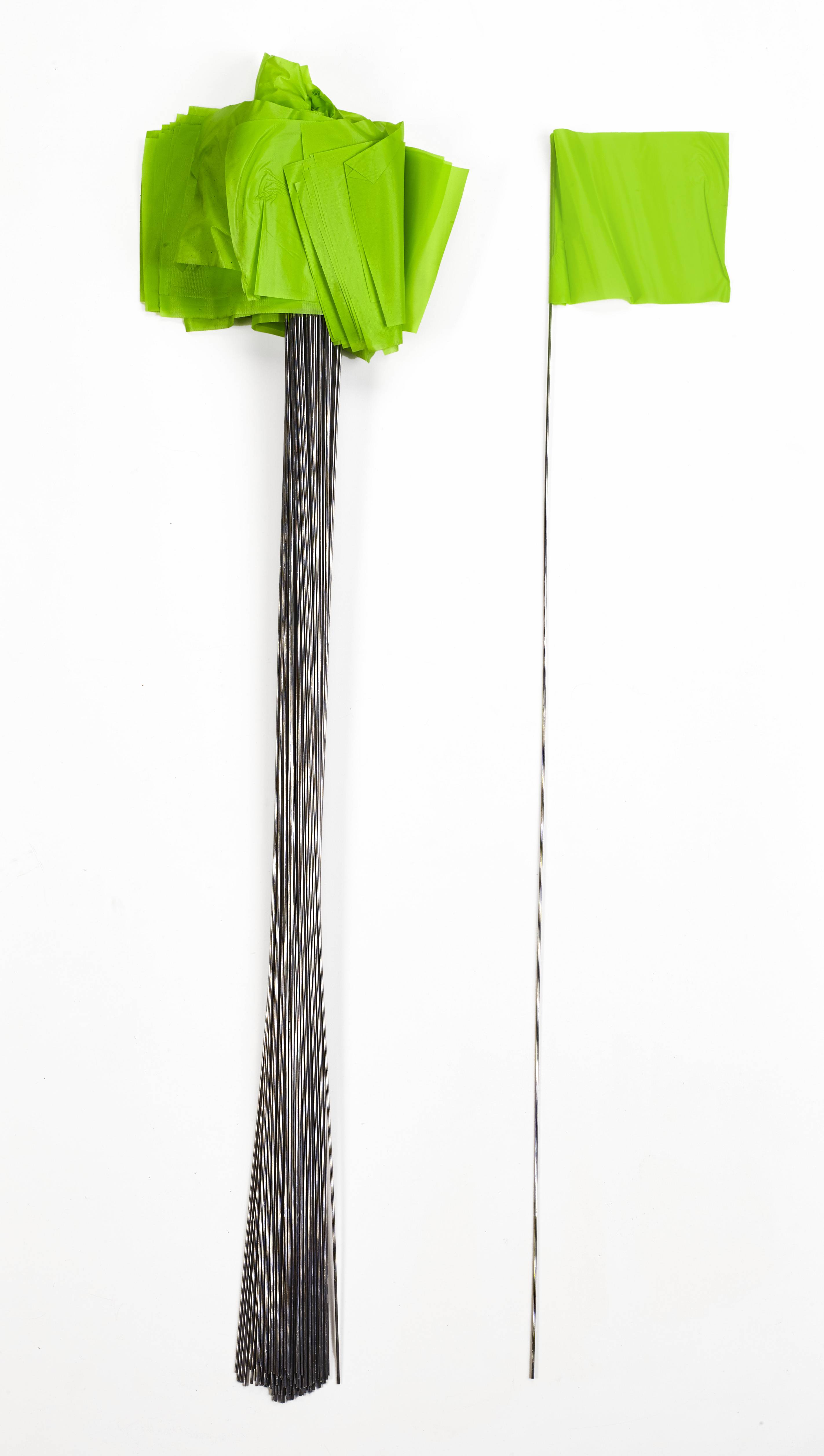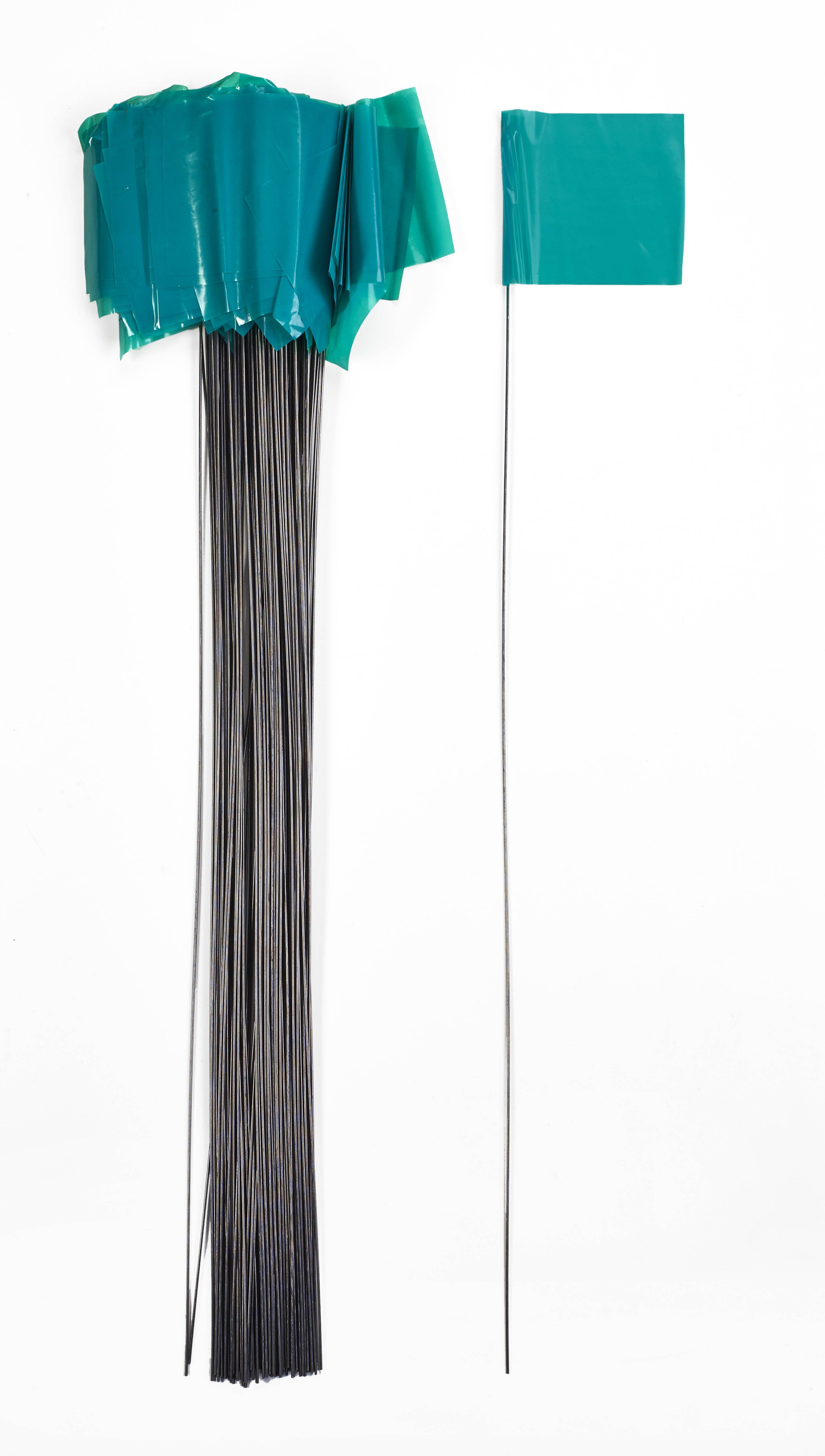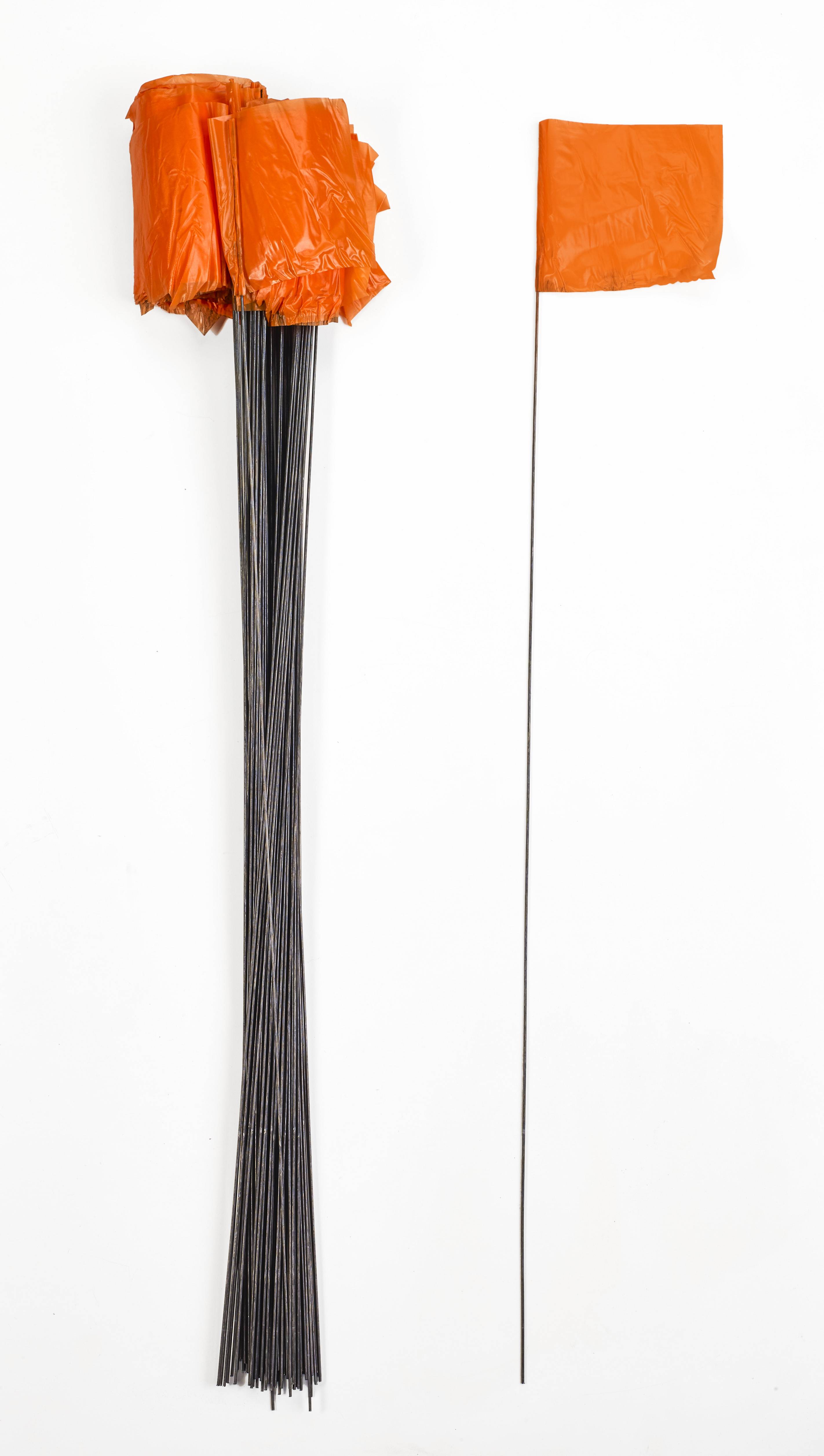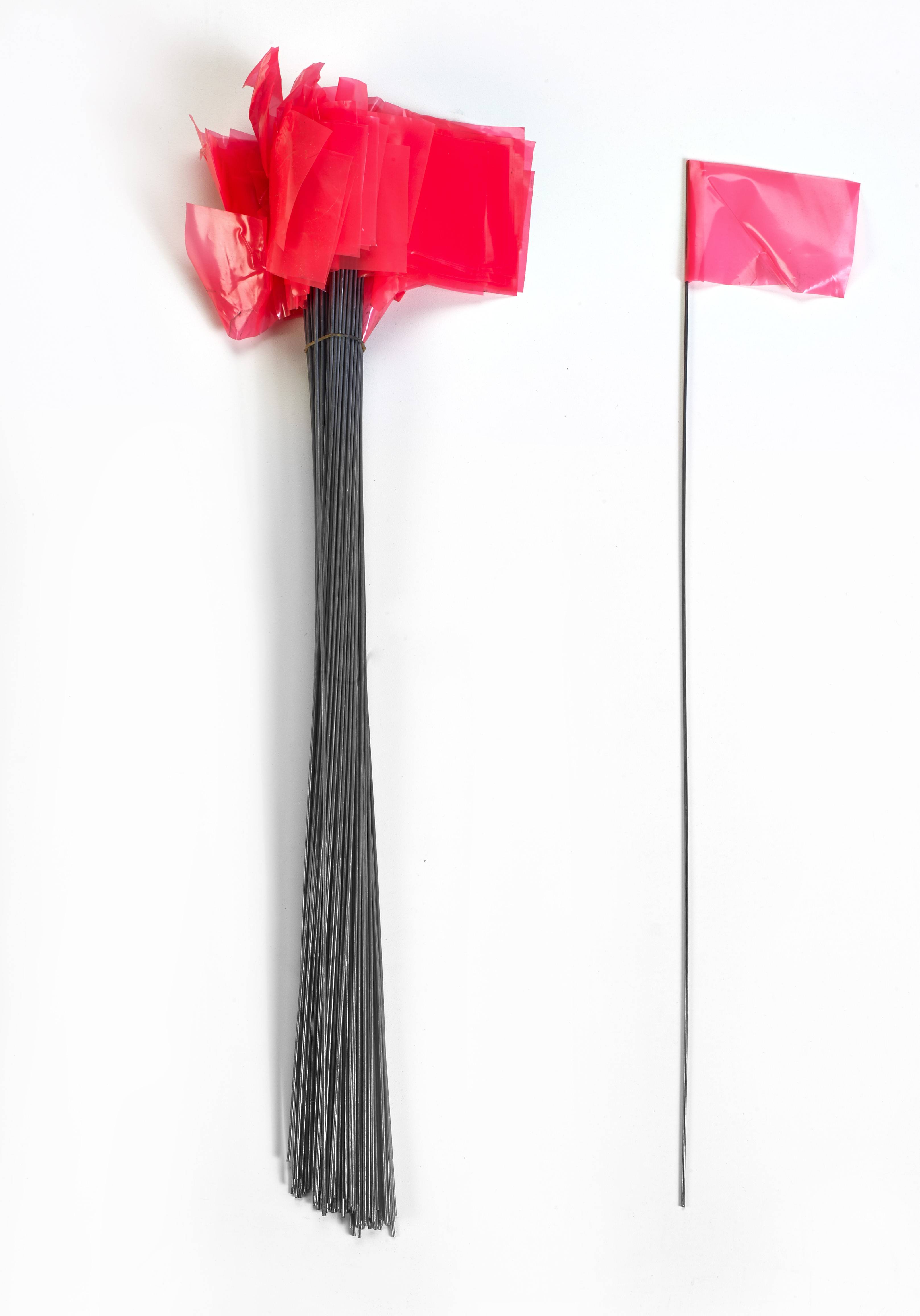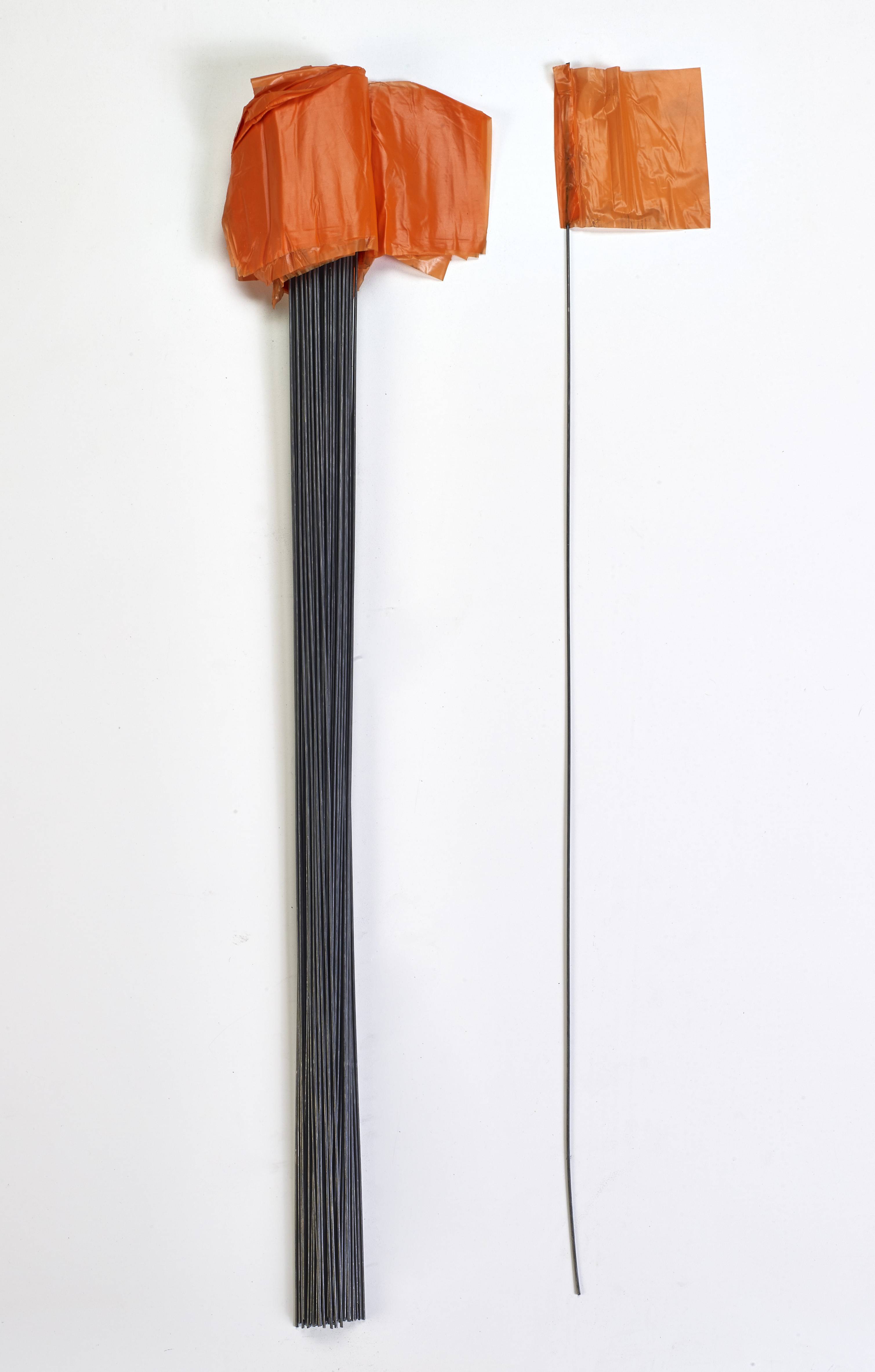 Our wire marking flags are rated #1 in the industry for quality and durability. A heavy gauge PVC flag is used that will not tear in the wind or crack from cold weather. An exclusive hot melt glue system insures that the flags stay on the wire and not on the ground. Available in 2.5” x 3.5” x 21” &
